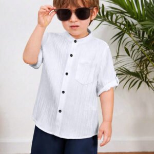 Boys Regular Fit Solid Mandarin Collar Casual Shirt (Pack of 2)